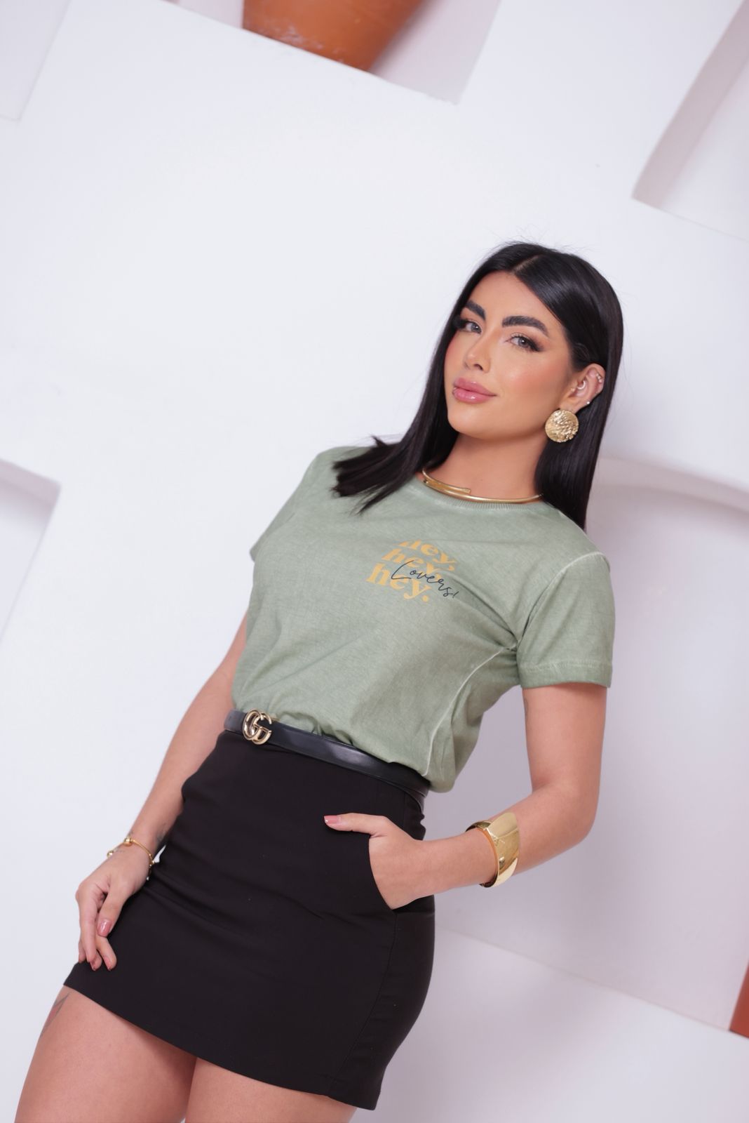 T-shirt modelagem baby look confeccionada em malha 100% algodão, estonada em lavanderia que oferece à peça maciez, com processo de pré-encolhimento para não encolher quando você lavar.